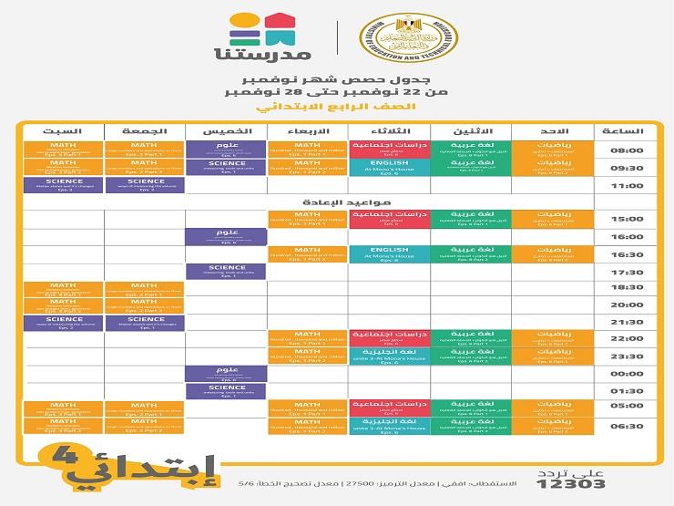 | جدول حصص قناة #مدرستنا: الفترة من 15 نوفمبر لــ 21 نوفمبر 2020 | hammo sat | ترددات الأقمار الصناعية و القنوات الفضائية | 5 | 2020/11/23 04:00 AM |