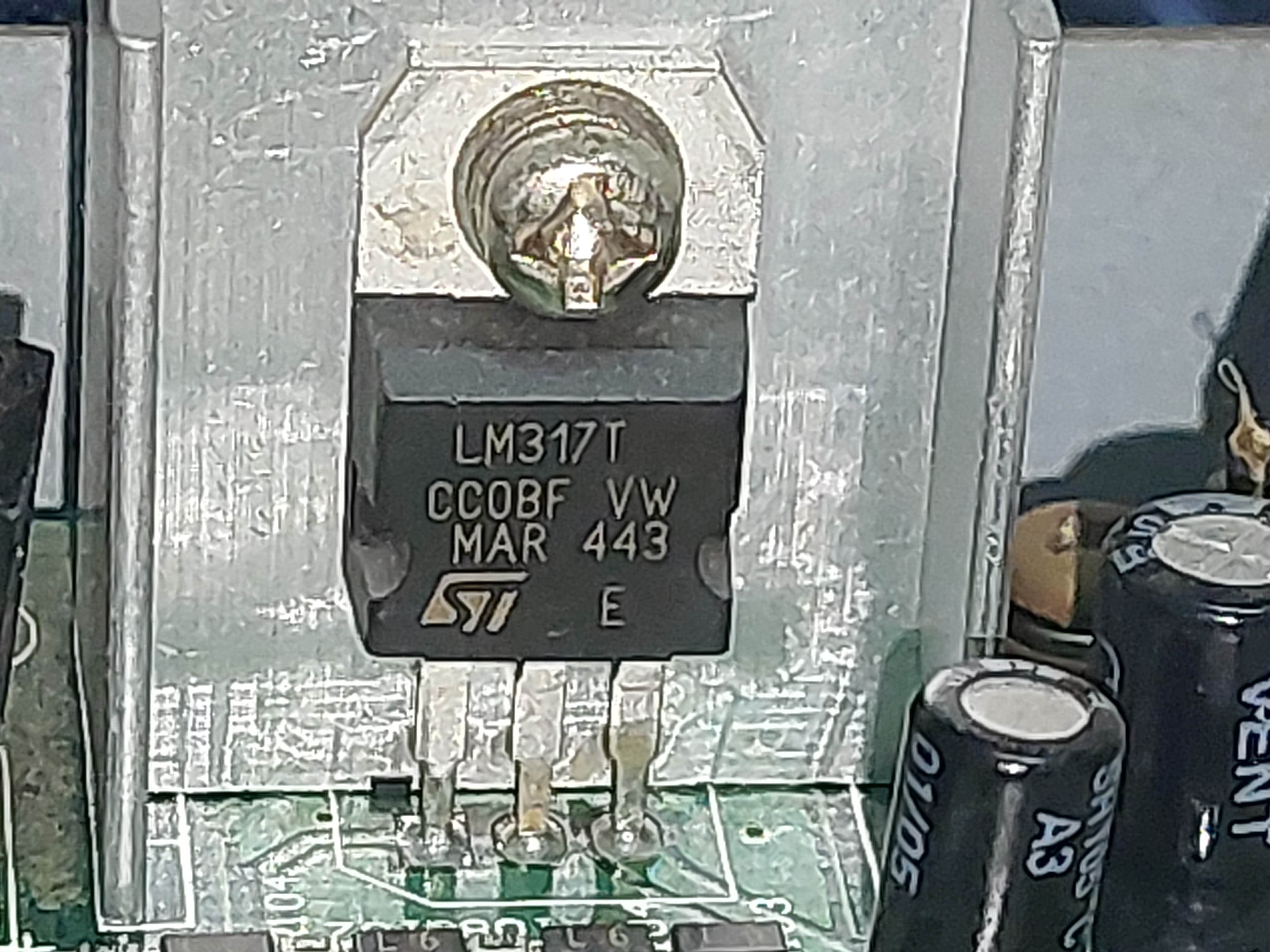 ال LM317 خلف التيونر وعليه تبريد مش في الباور